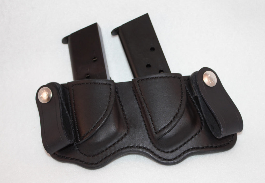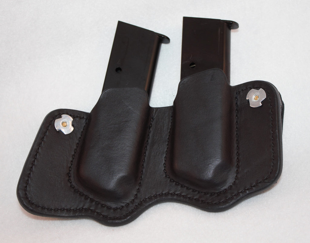 Red's double mag pouch allows for easy and comfortable concealment of two single stack magazines giving its users the peace of mind of having extra ammo readily available. This mag pouch features 8 oz. reinforced mouths for an easy draw and holstering. The magazines ride at a 20 degree forward cant for easy access and concealment. This can be made as a belt slide or IWB style mag pouch.